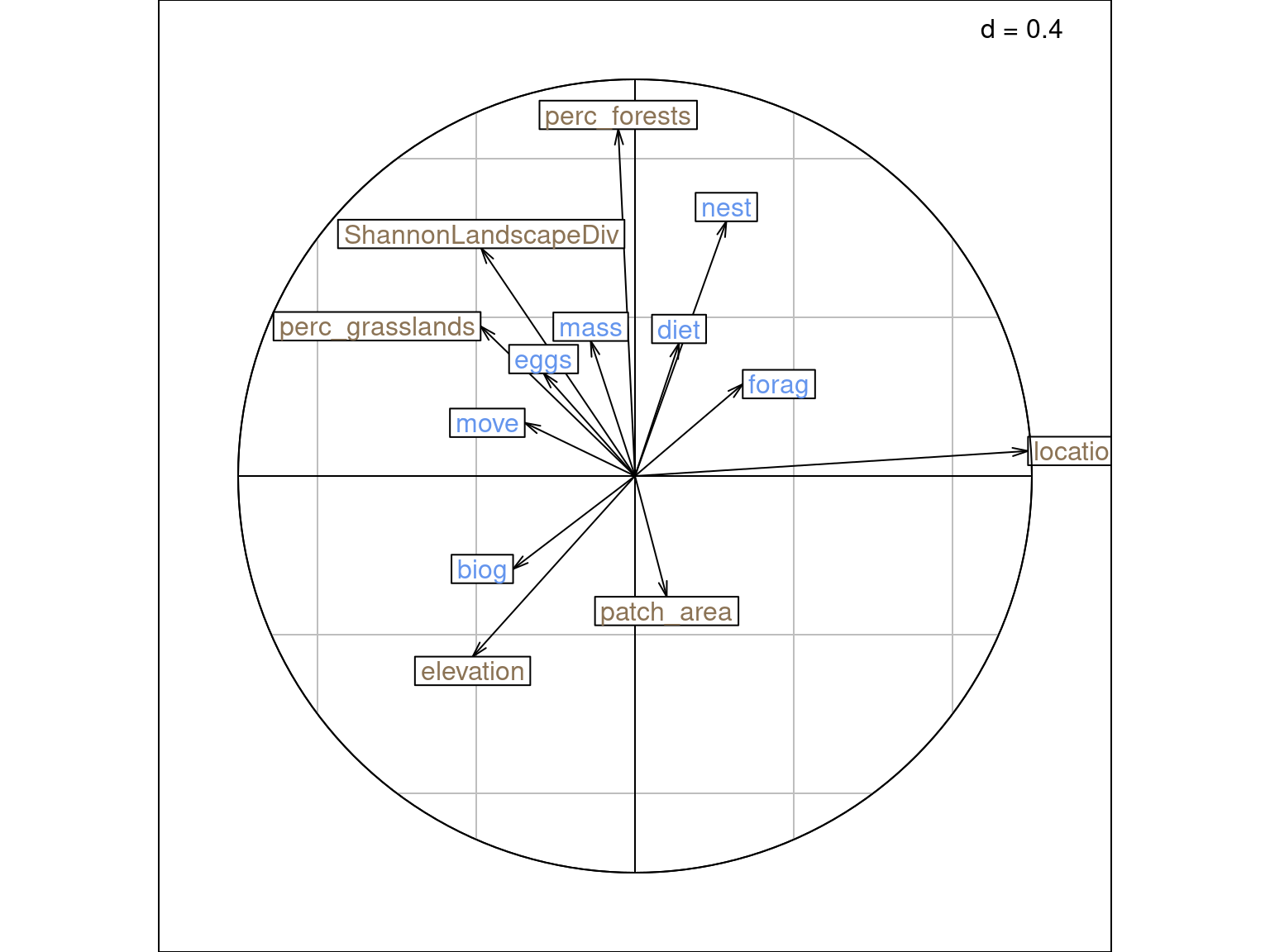 Moreover, species traits (\(BS_C^1\)): arrows indicate intra-set correlations.
