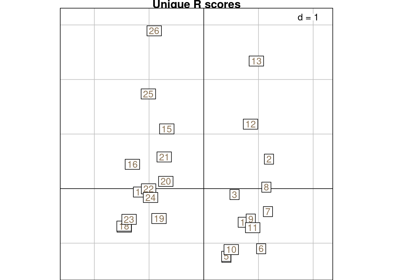 | Variance for axis \(k\) | \[s_k^2(i) = \frac{1}{p_{i \cdot}} \sum_{j = 1}^c \left(p_{ij} v_{jk} \right) - {u^\star_{ik}}^2\] | None |