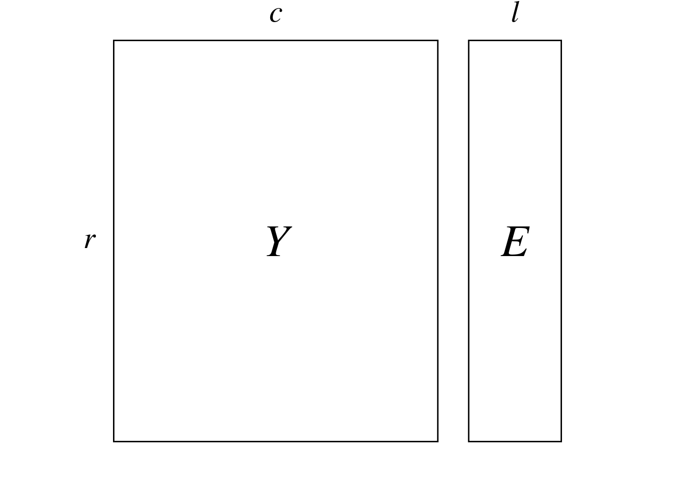 To perform the canonical correlation analysis, we compute the inflated tables \(R\) (\(n_{\bar{0}} \times l\)) and \(C\) (\(n_{\bar{0}} \times c\)) from \(Y\) (\(r \times c\)) and \(E\) (\(r \times l\)). The difference with CA is that we use \(E\) instead of \(Y\) to compute the inflated table \(R\). \(R\) is equivalent to \(E\) where rows of \(E\) are duplicated as many times as there are correspondences in \(Y\).